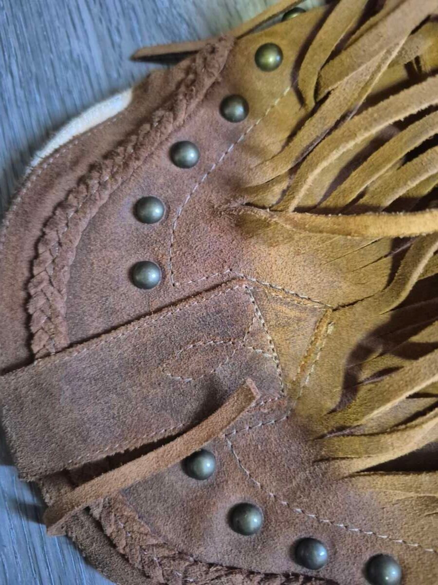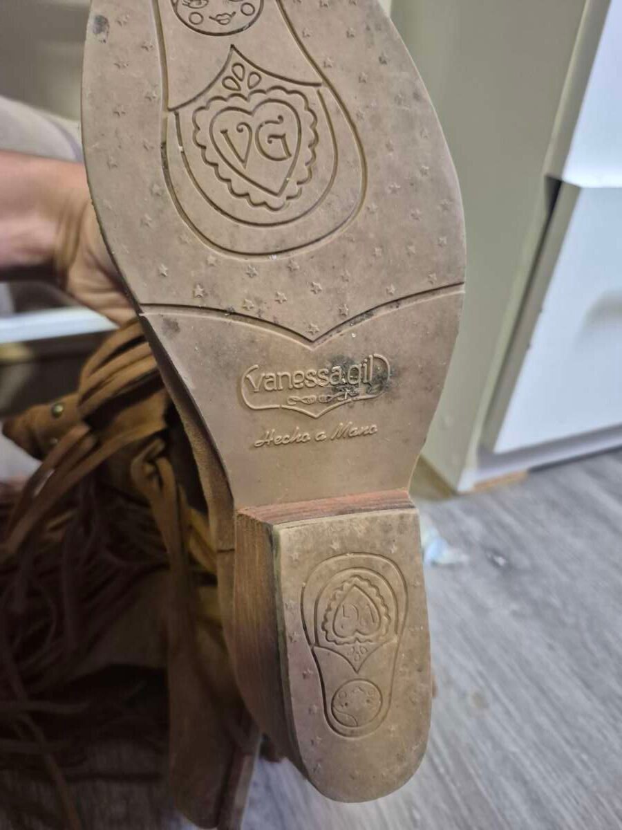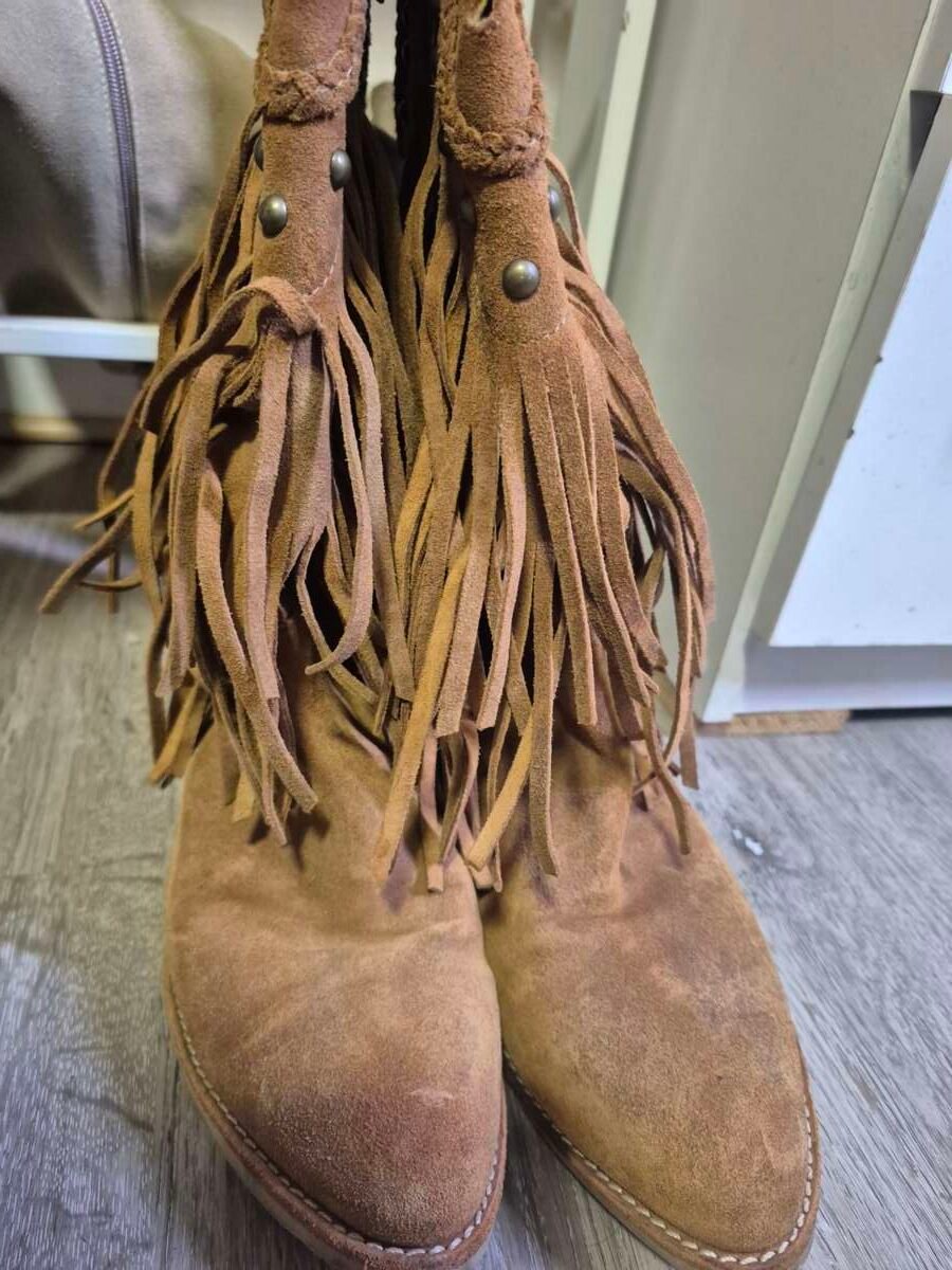 Vendo botas vaqueras con flecos, talla 38 con taco de 2 centimetros aprox material cuero y gamuza con 3 posturas sin detalles ..