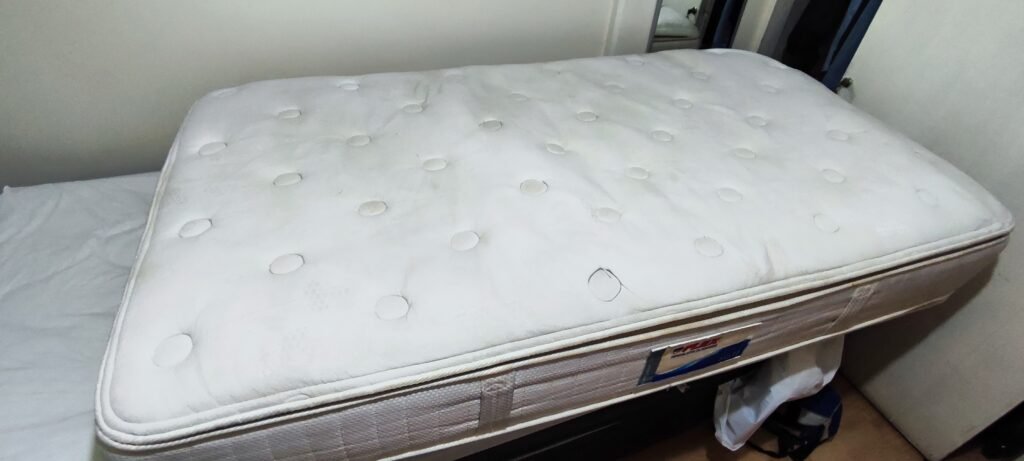 Tiene algunas manchas de uso, pero sigue siendo muy cómodo y firme. Ideal para pieza de visitas, estudiantes o segunda cama.