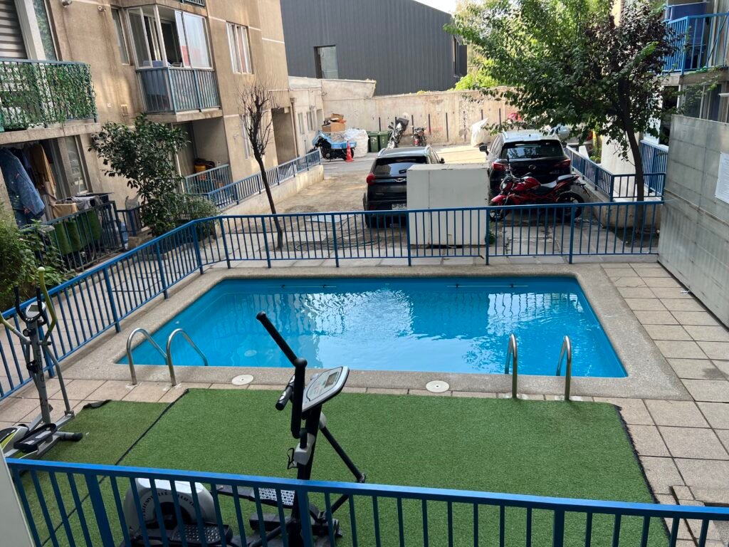 Departamento ubicado en un edificio que cuenta con acceso controlado y áreas comunes pensadas para la vida en comunidad. La propiedad posee una superficie total y útil de 43 m², distribuidos en tres dormitorios y un baño. El diseño interior incluye un living-comedor con salida a un balcón que ofrece vista hacia el sector interior del condominio, permitiendo disfrutar del entorno y áreas verdes. La cocina está equipada con lavaplatos y calefón y se integra de manera funcional al espacio principal. Los dormitorios cuentan con piso flotante y ventanas al exterior, lo que aporta ventilación natural. El baño está equipado con tina, lavamanos y estanterías. El edificio dispone de ascensores, piscina, lavandería y sector de juegos infantiles, además de permitir mascotas. La cercanía a la estación de metro Hospitales facilita la conectividad y acceso a servicios. Claudio Clavería 9.9702753.4