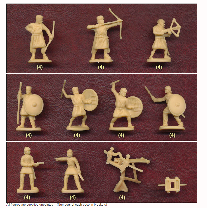 Caja de figuras de infantería ligera romana tardía, sin pintar. Impecable en caja y rejillas originales. Marca Hat. 36 figuras más 4 scorpios (lanzadores de flechas). No incluye pegamento ni pintura. Excelente calidad.