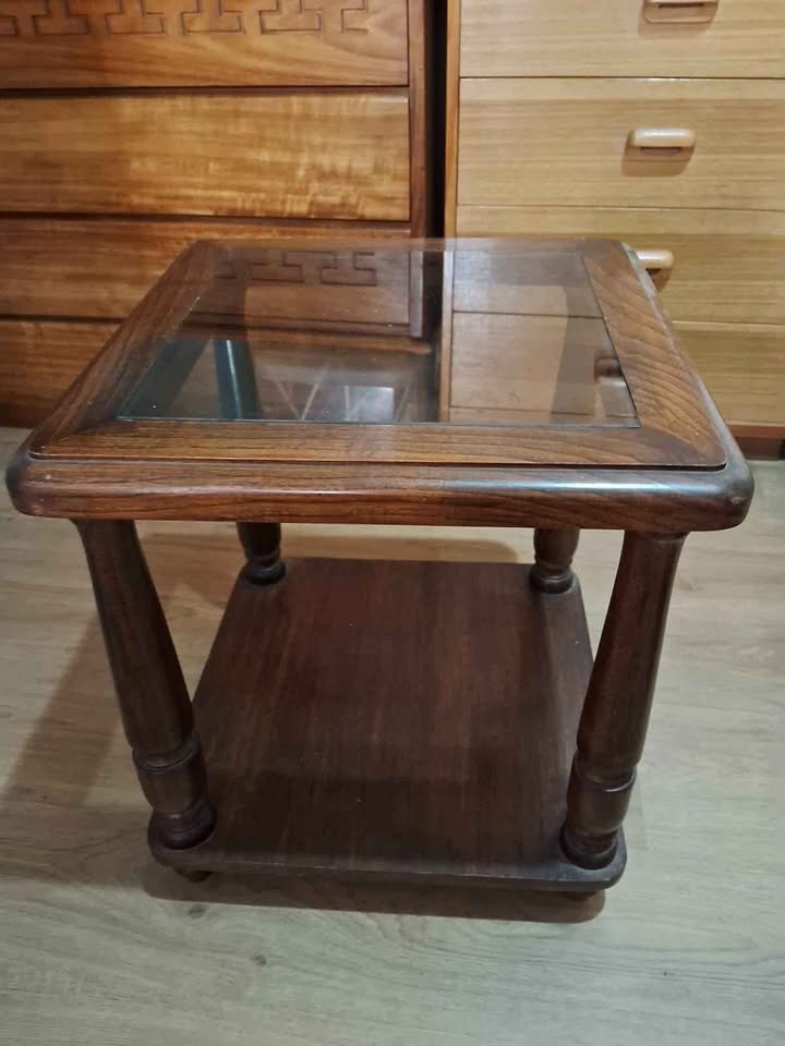 Vendo dos mesas de madera sólida con cubierta de vidrio. Están en buen estado, firmes, ideales para el living o como mesas laterales. Tienen un estilo clásico, muy decorativas y funcionales.