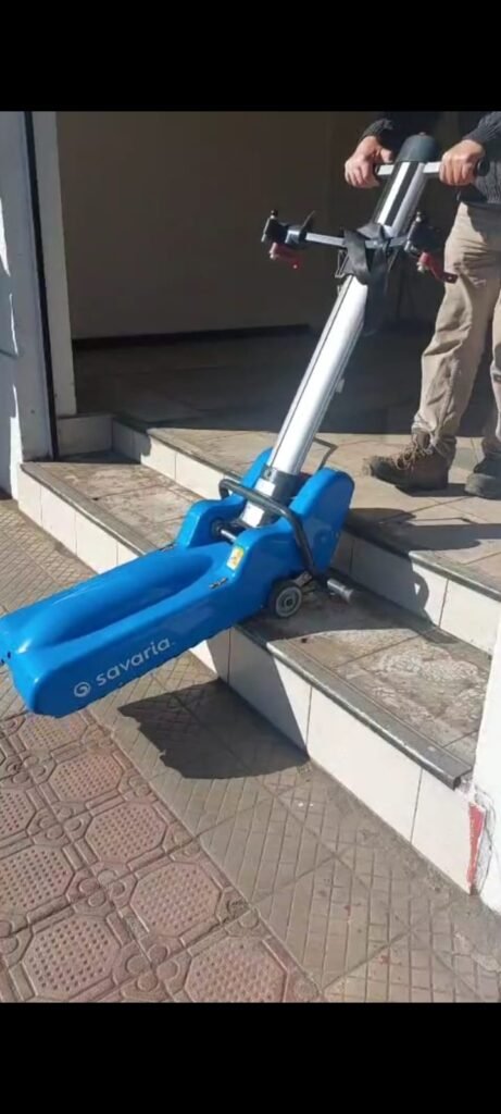 🔸 Se acopla a la silla de ruedas y el acompañante controla el ascenso/descenso sin tener que emplear fuerza alguna.
