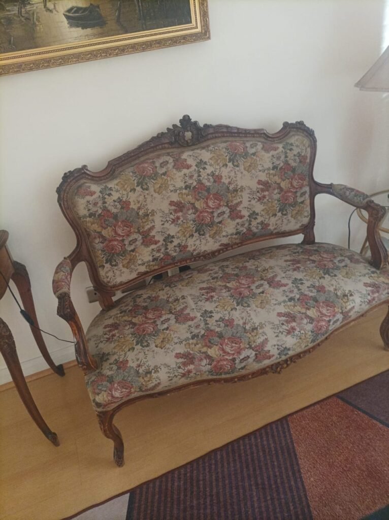 Si estás buscando sillón antiguo para decoración o ambientación de espacios, esta pieza es ideal para quienes valoran muebles con historia y estilo clásico. Su tapiz de tela floreada y sus patas de madera barnizada en tono café le dan un look elegante, cálido y perfecto para living, hall, sala de estar o proyectos de decoración vintage.
