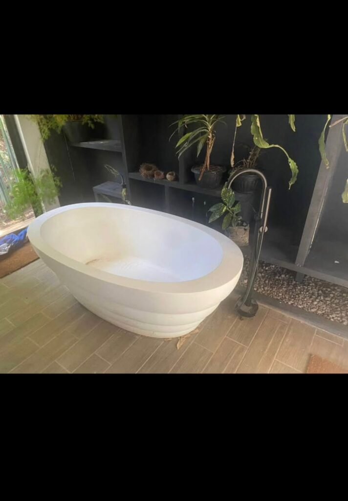 Las tinas isla con diseño artesanal son difíciles de encontrar, especialmente con este estilo natural, curvo y con presencia estética real. Esta pieza destaca por su forma única, su grifería de diseño y la capacidad de elevar cualquier baño con un look moderno y relajante, similar a un spa de hotel.